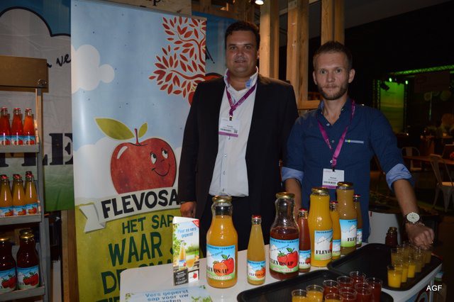 Jochem van der Wegen en Marcel Zuidema van Flevosap. Het sap waar je de smaak ziet zitten.... schudden voor gebruik!