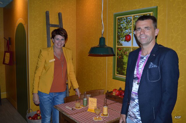 Appelsap van Zeeuwse bodem. De Appelaere uit Zeeuws Vlaanderen had een nostalgische stand ingericht. Janine Tazelaar en Carlo de Smit.