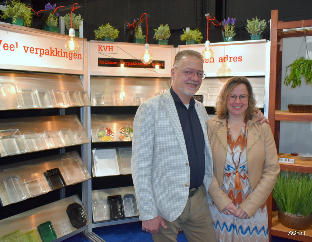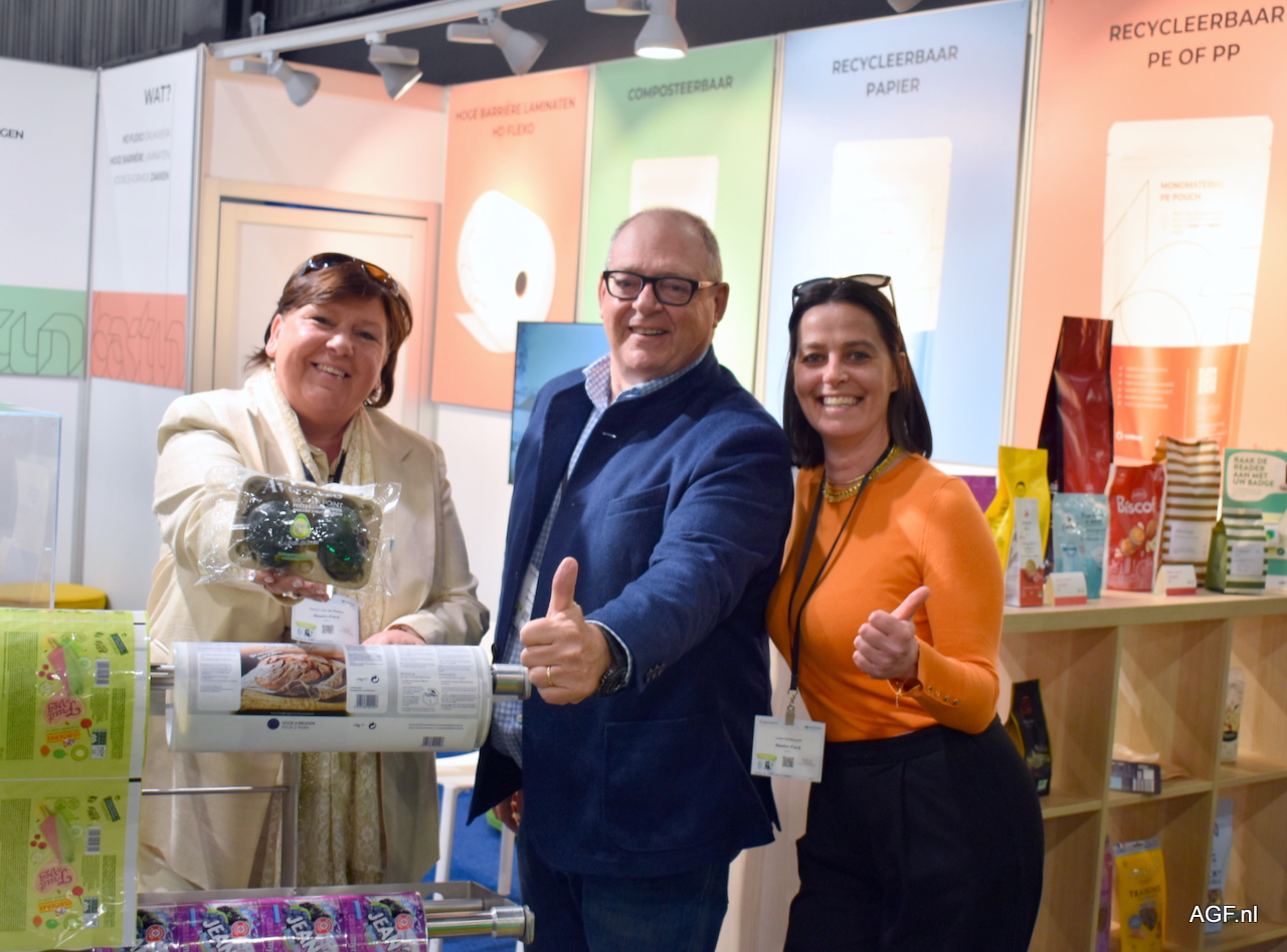 Het motto bij Kolkman Verpakkingen is: 'Niet verspillen, maar verpakken!'. Gert Kolkman en Karin Biesheuvel lieten verpakkingen zien die breed toepasbaar zijn in de AGF.