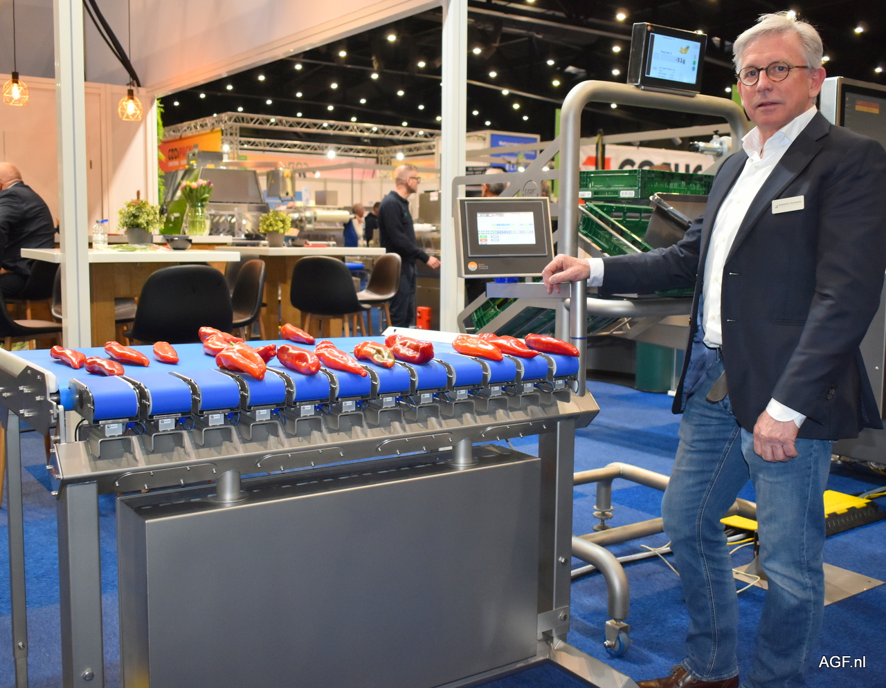 Dutch Weighing Company, Jan Damen. Leverancier van combinatiewegers. De machine op de foto is geschikt voor lange producten zoals pastinaak, prei, courgette, puntpaprika etc.
