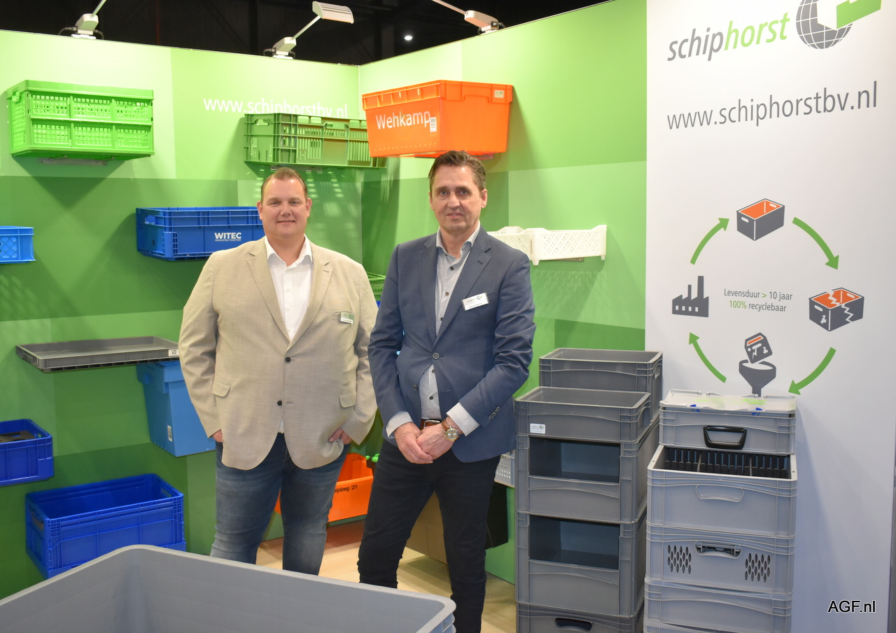 Vincent Wesseldijk en Hans van Noesel van Schiphorst BV, leverancier van kunststof (kalp)kratten.
