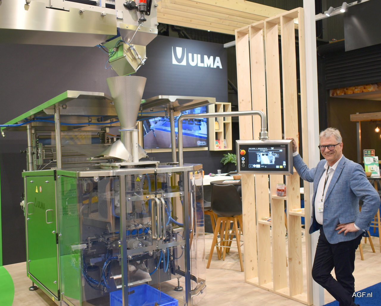 Alex Hofstee van Ulma poserend bij een Ulma VTI 640.