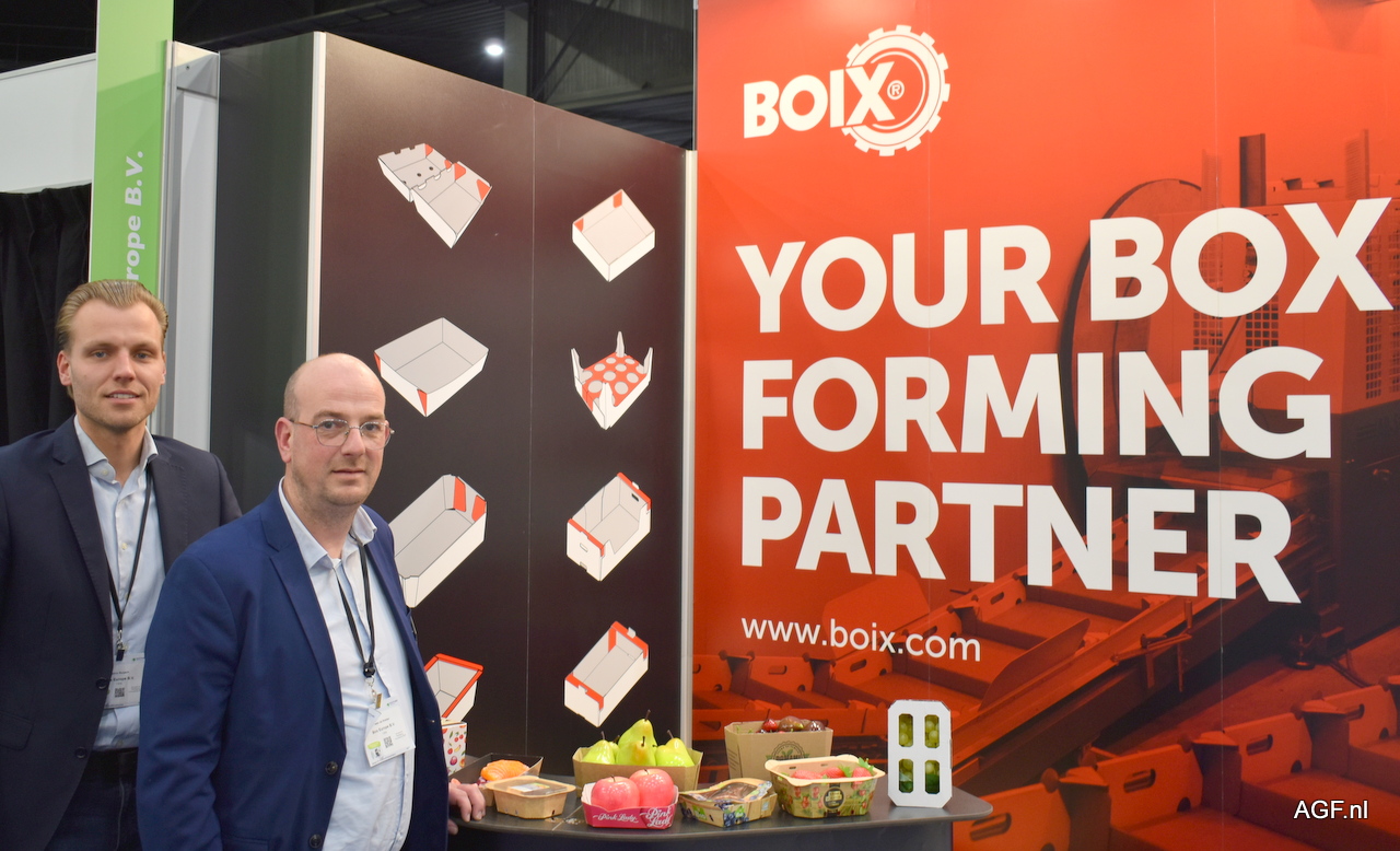 Kelvin Ruijsch en Pieter de Ridder van Boix Europe BV. Dozen- en tray opzetmachines.