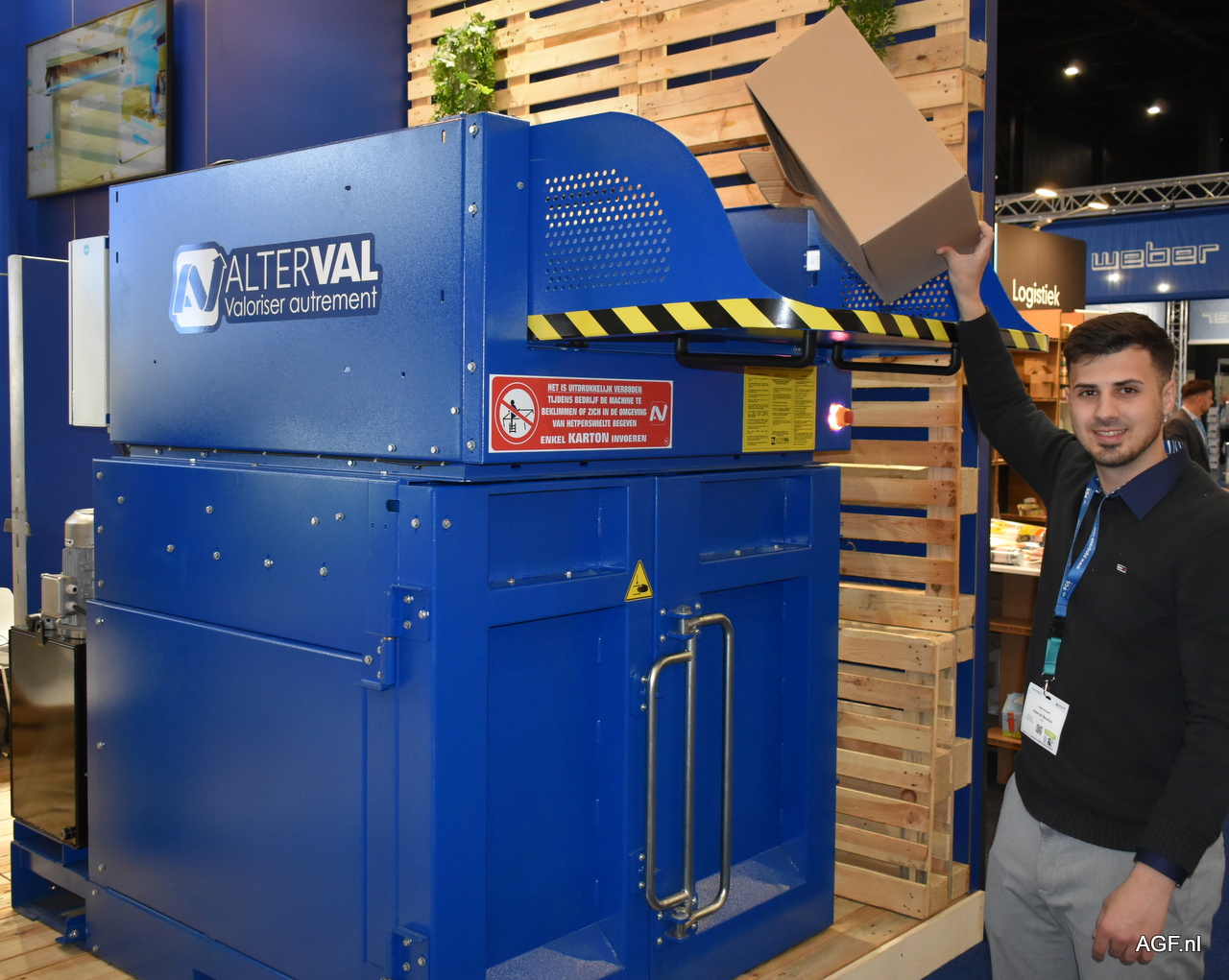 Niels Willaert van Alterval Benelux. Afval comprimeren met de getoonde machine.