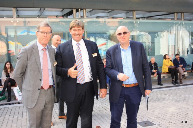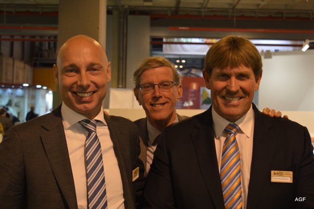 Een Nederlandse mix: Otto de Groot van HDG, Rob Boogmans van HDG (te herkennen aan zijn duim) en Fred Rennen van Exsa Europe.