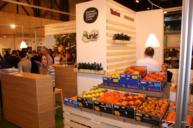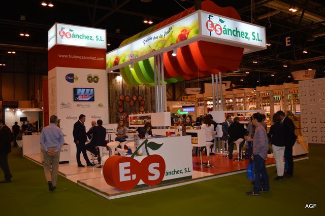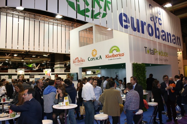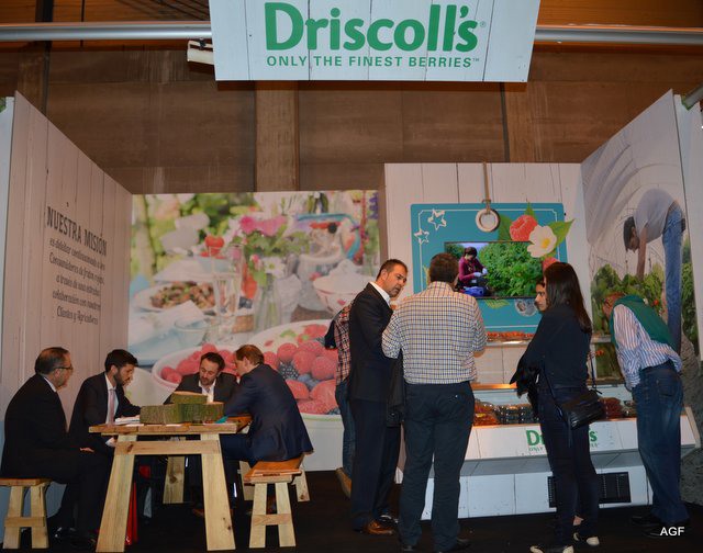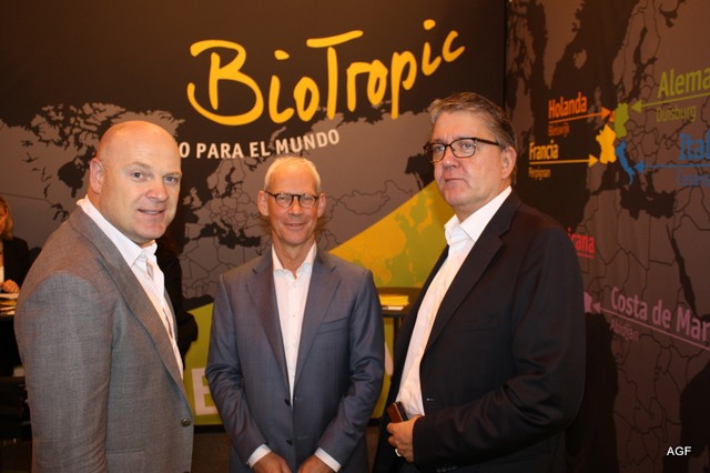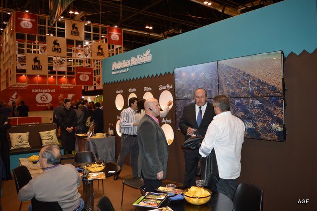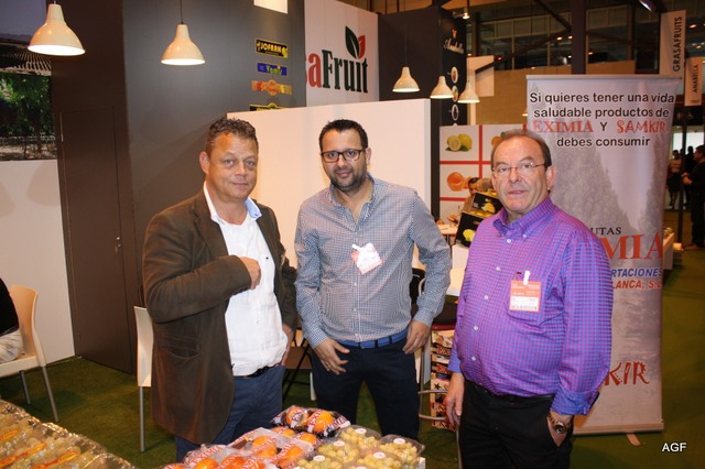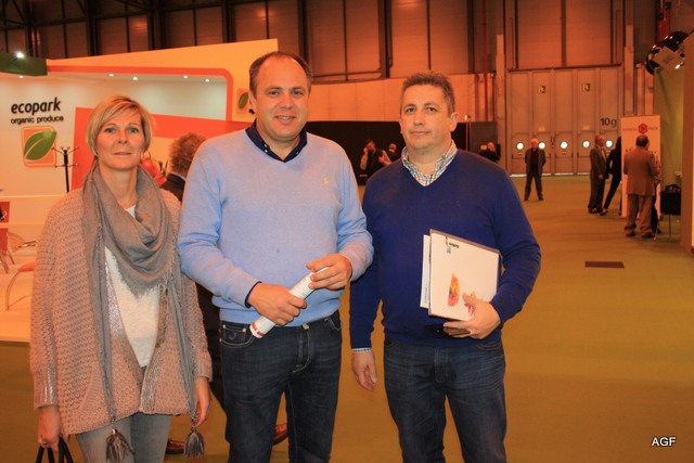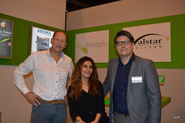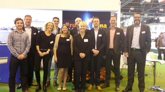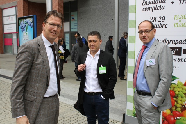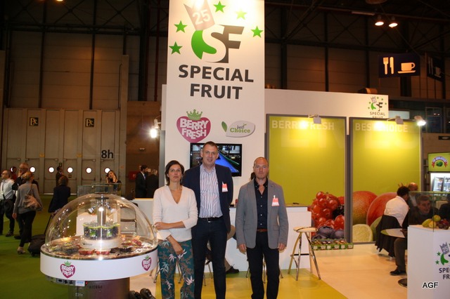 Bloedbessen staat voor de 3e keer op de Fruit Attraction. Marktverbreding, nieuwe en bestaande klanten ontmoeten. Veel vraag naar rode bessen vanuit Zuid Europa. Links, Chris Bloed, Eefje Bloed en Stefan de Wit.