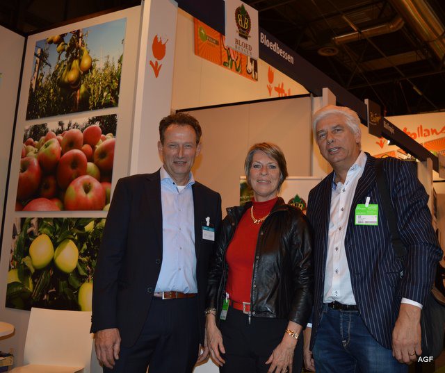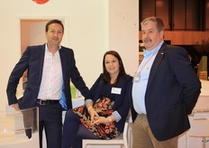 Links hardfruitspecialist Kees Oskam, Christie de Vrij en Erik Flux van Jan Oskam BV.