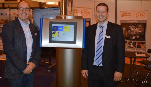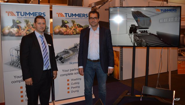 Hein Kortebos van Tummers met Peter Eijsbouts van Concept Engineers. Ook dit jaar stonden de mannen op een gezamenlijke stand. Een nieuwtje van Tummers is dat zij een eerste grote wortelwasser hebben geplaatst in Valencia.