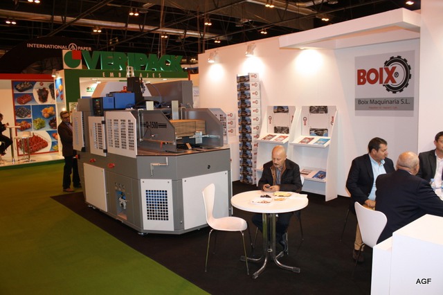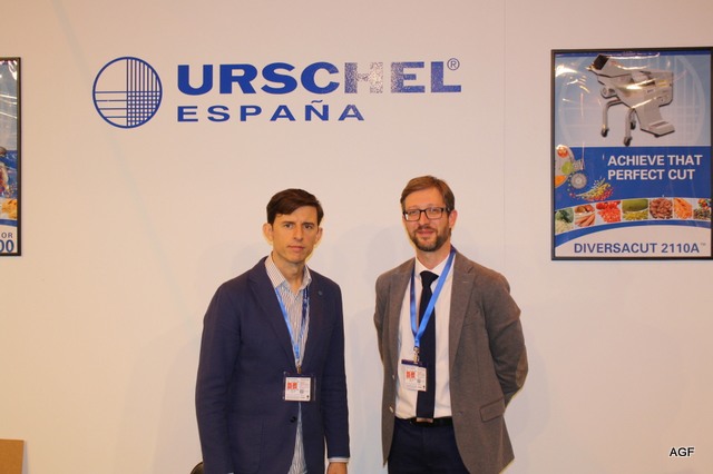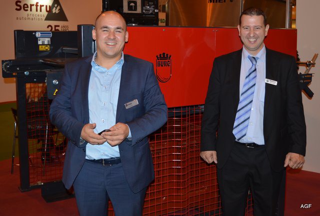 Longobardi is leverancier van verpakkingslijnen. Links Giovanni Drei en Rafael Ibanez van Saminox. Zij zijn verdeler voor Longobardi in Spanje.