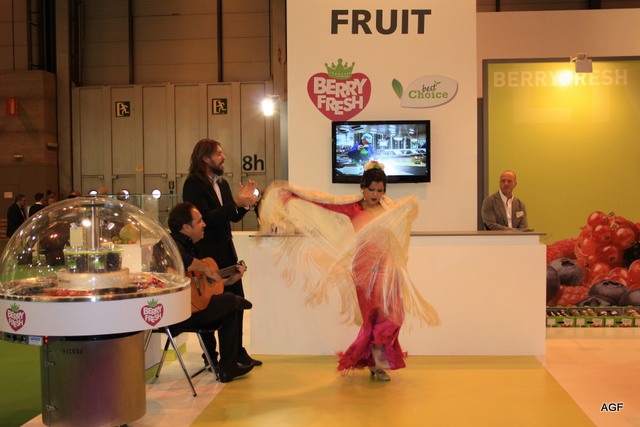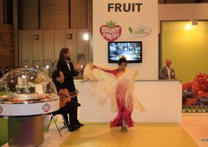 Special Fruit had speciaal voor de beurs nog een danseres en een zanger ingehuurd.