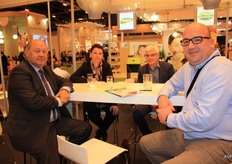 Bernard Buyck van Calsa vermaakt zich met een deel van het team van Brutyn. Rechts Xavier Brutyn en in het midden zijn partner en Vincent Buccoleri.
