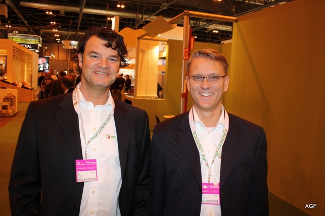 Kelly den Herder van FreshPlaza.es met Richard van den Dolder van Inverness Transport.