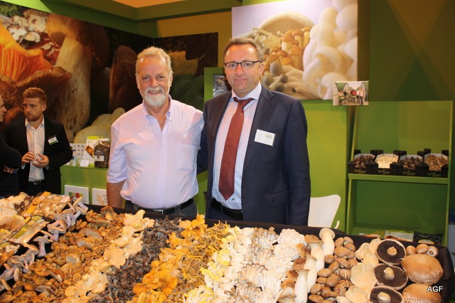 Fresh Mushroom Europe (FME) en Delicious Mushroom Produce (DMP). Links Gerard Moerman en Arie Verburg.