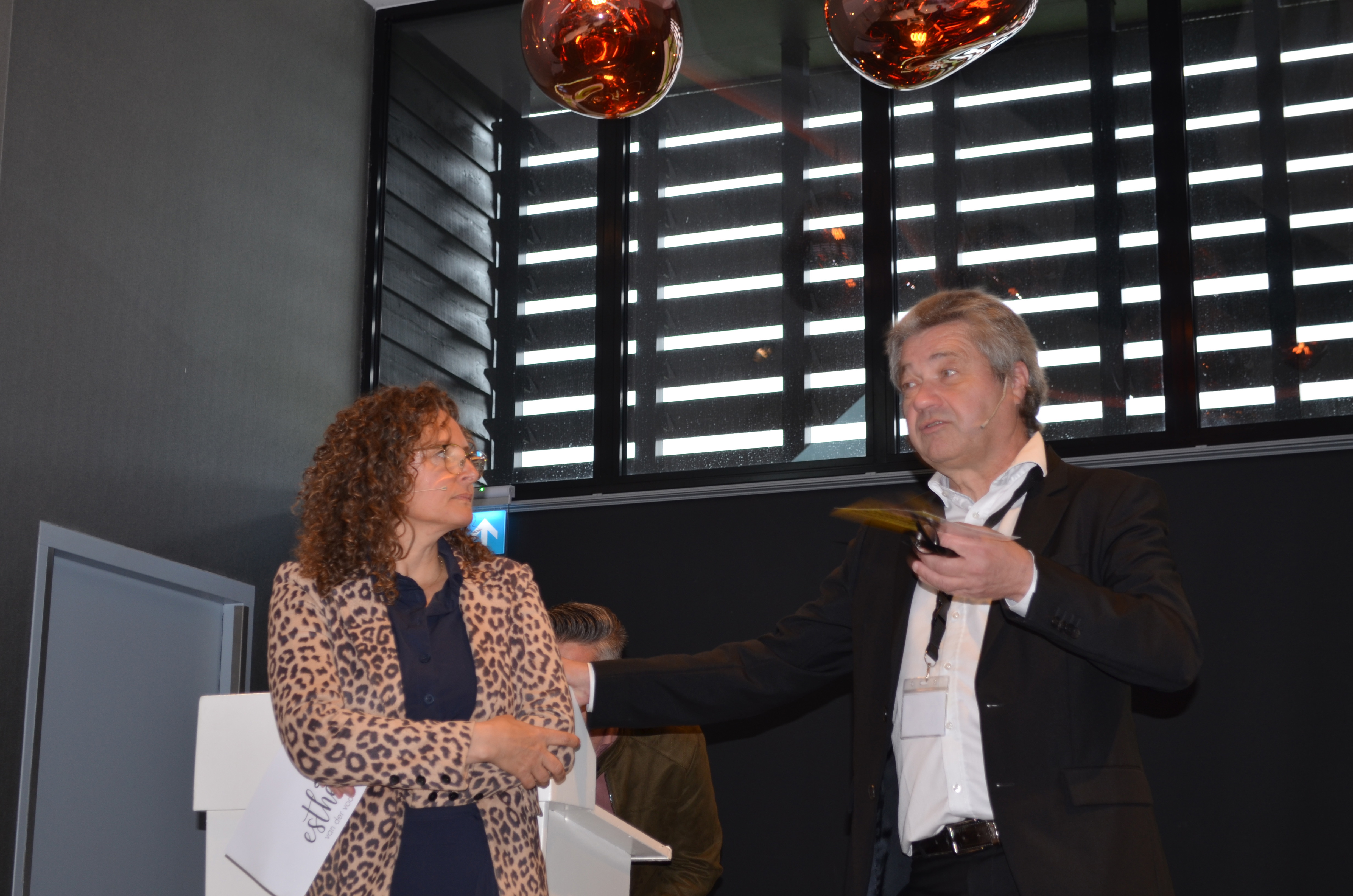 Event-host Esther van der Voort met Fries Lefevere, Director Solution Sales Aptean