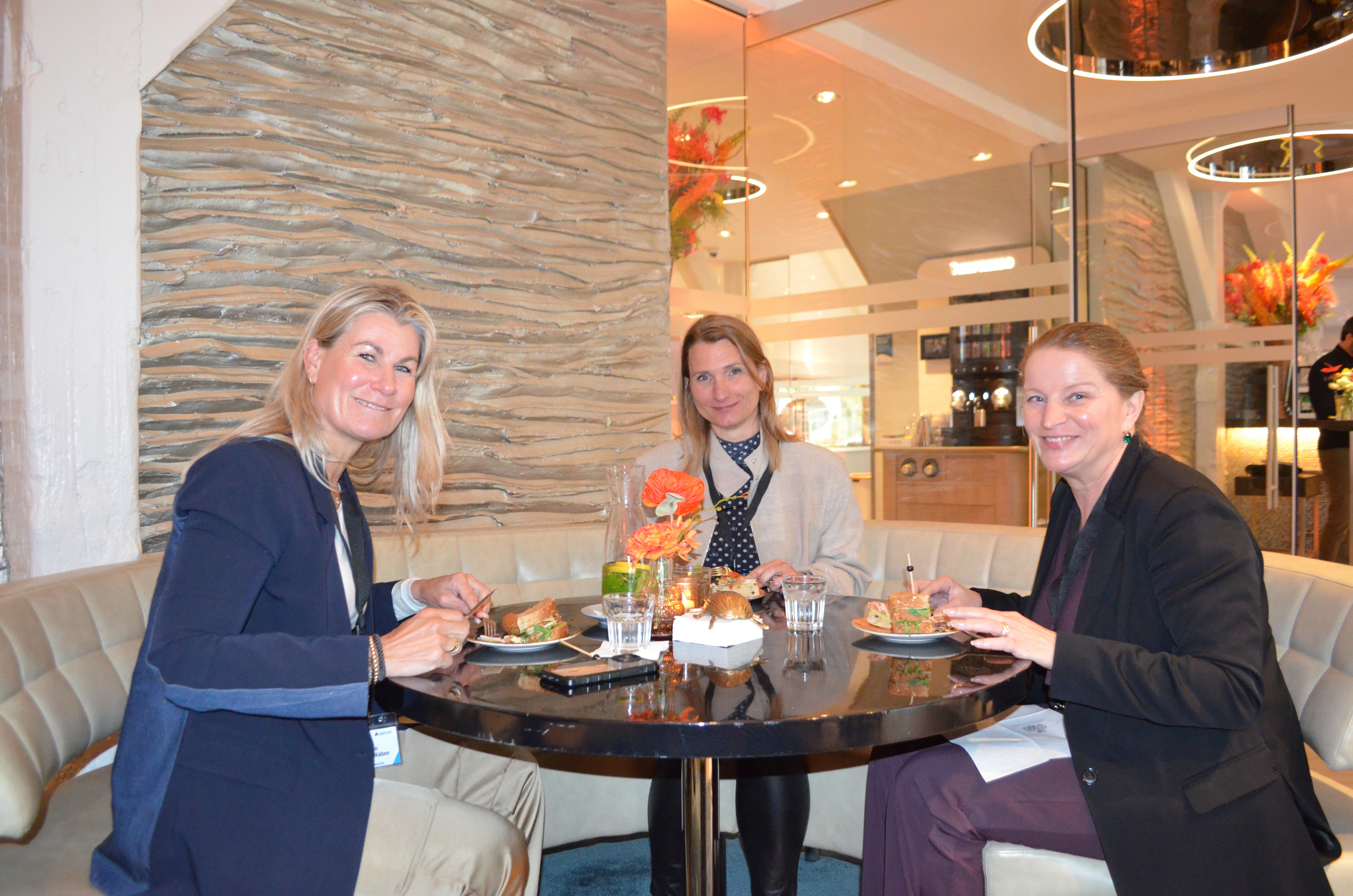 Een onderonsje van 'AGF-sters': Greeke Robaard-Naber (Koelhuis Dronten), Fleur Dorgelo (Frarma) en Caroline Keijzers (Laarakker)