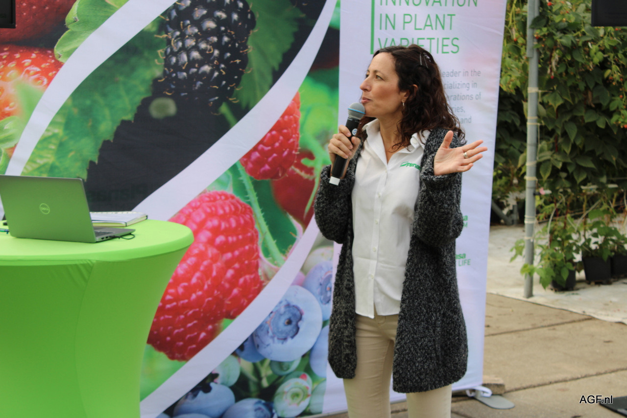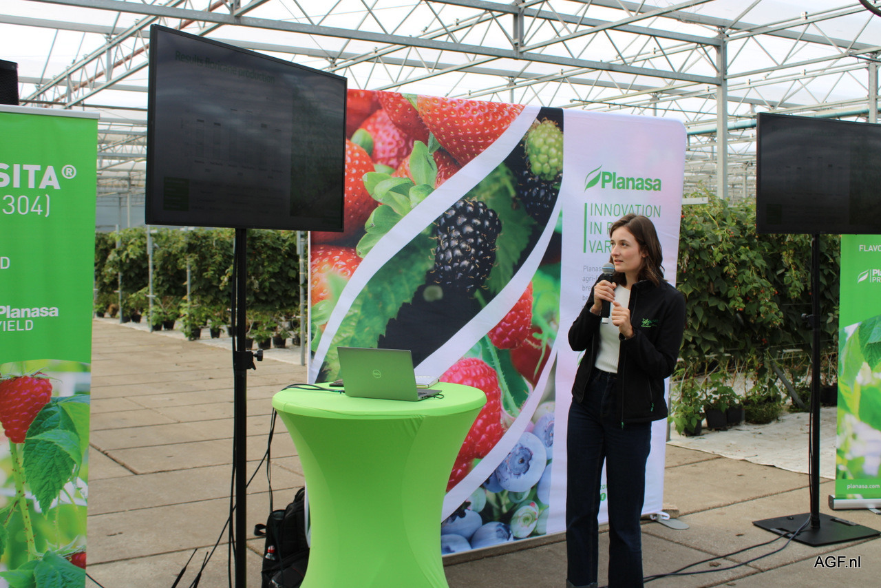 Elisa Pérez, breeding manager bij Planasa, demonstreert de Pink Rosita