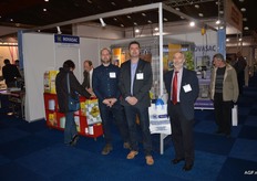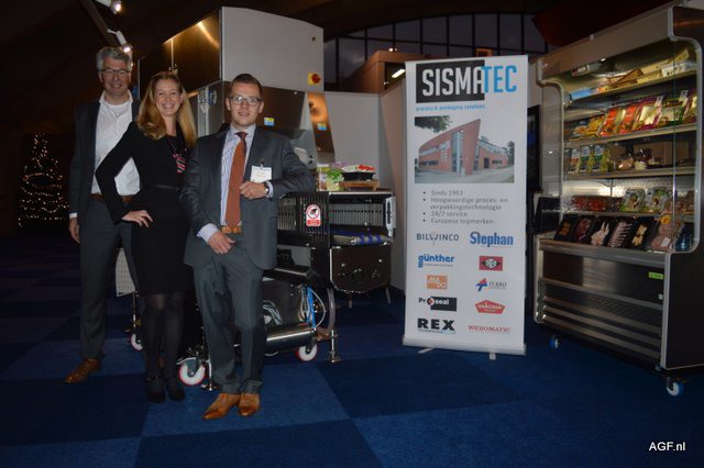 Proseal, voor het eerst vertegenwoordigt op de Empack in Brussel. Sismatec presenteerde ook kartonnen- en hersluitbare verpakkingen. Op de foto Gerrit Tijhof, Magali Goddeeris en Jorie Aerts.