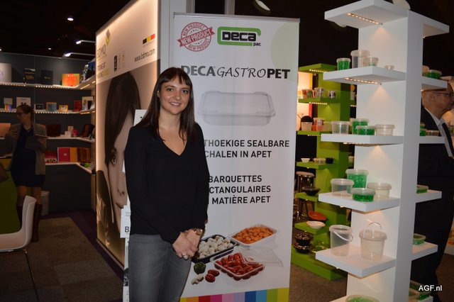 Als we de Empack bezoeken zijn we altijd speurend naar AGF gelieerde producten. Zo zagen we in de stand van Bastin-Pack de hersluitbare draagzak. Een zogenaamde stazak die het product toont en toch met de opdruk onderscheidend kan zijn in het winkelschap. Drukken en lamineren van folie op de rol. Rechts Aurélie Van De Vijver.
