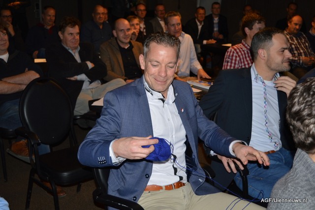 en deelde later zelf een cadeautje uit... Rene Vanwersch (Mulder Onions) nam het mee naar huis voor aftrendend bestuurslid Gerard Hoekman