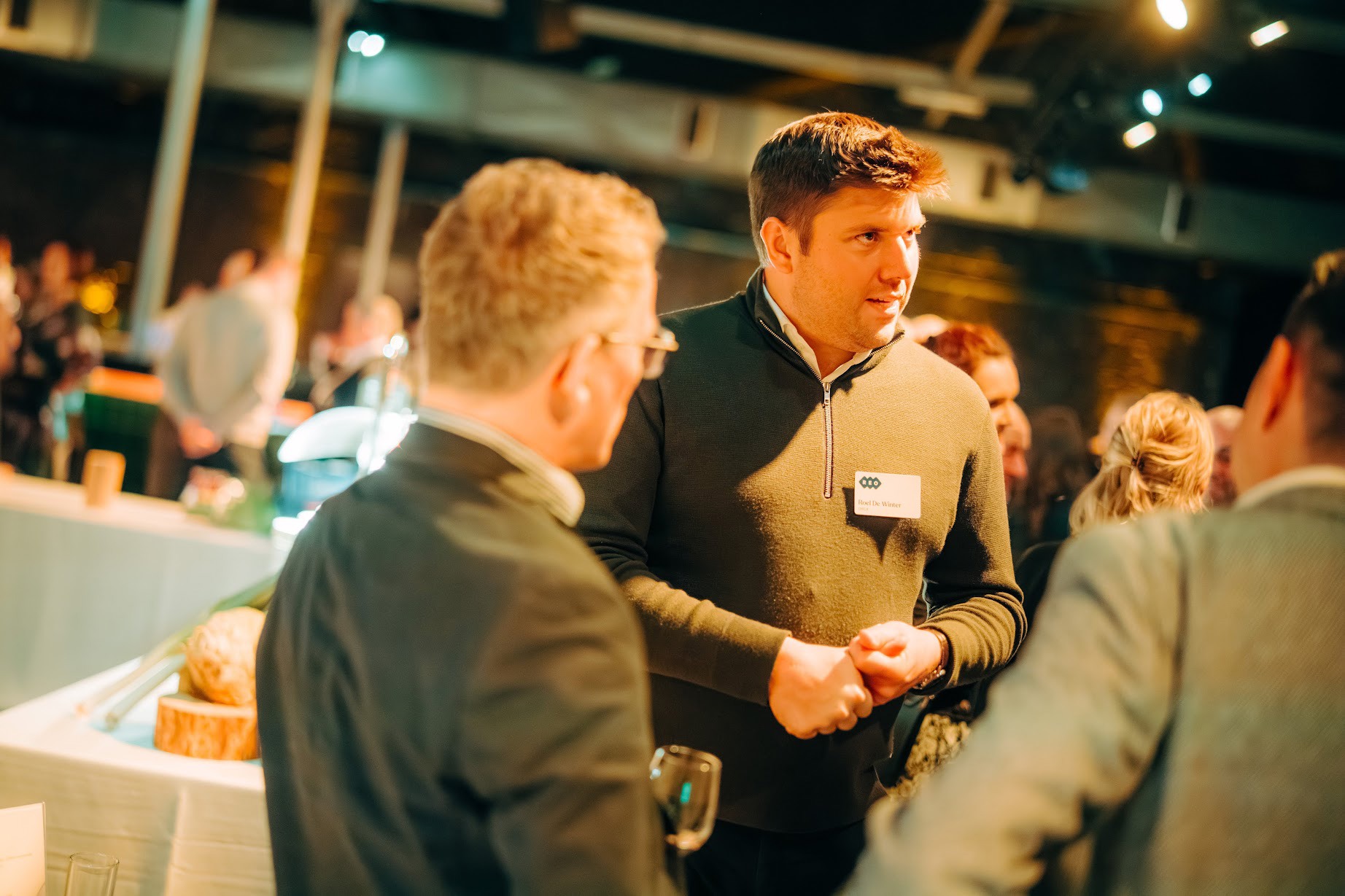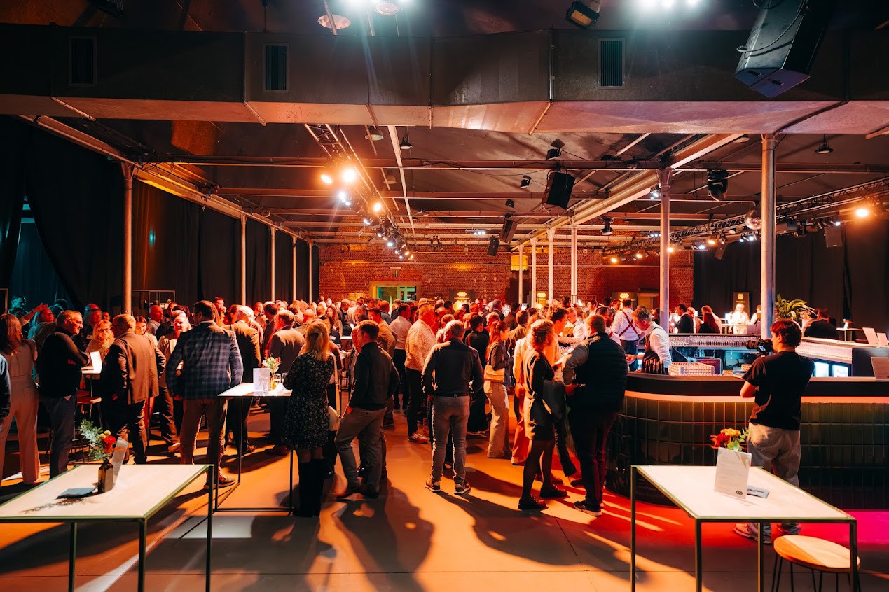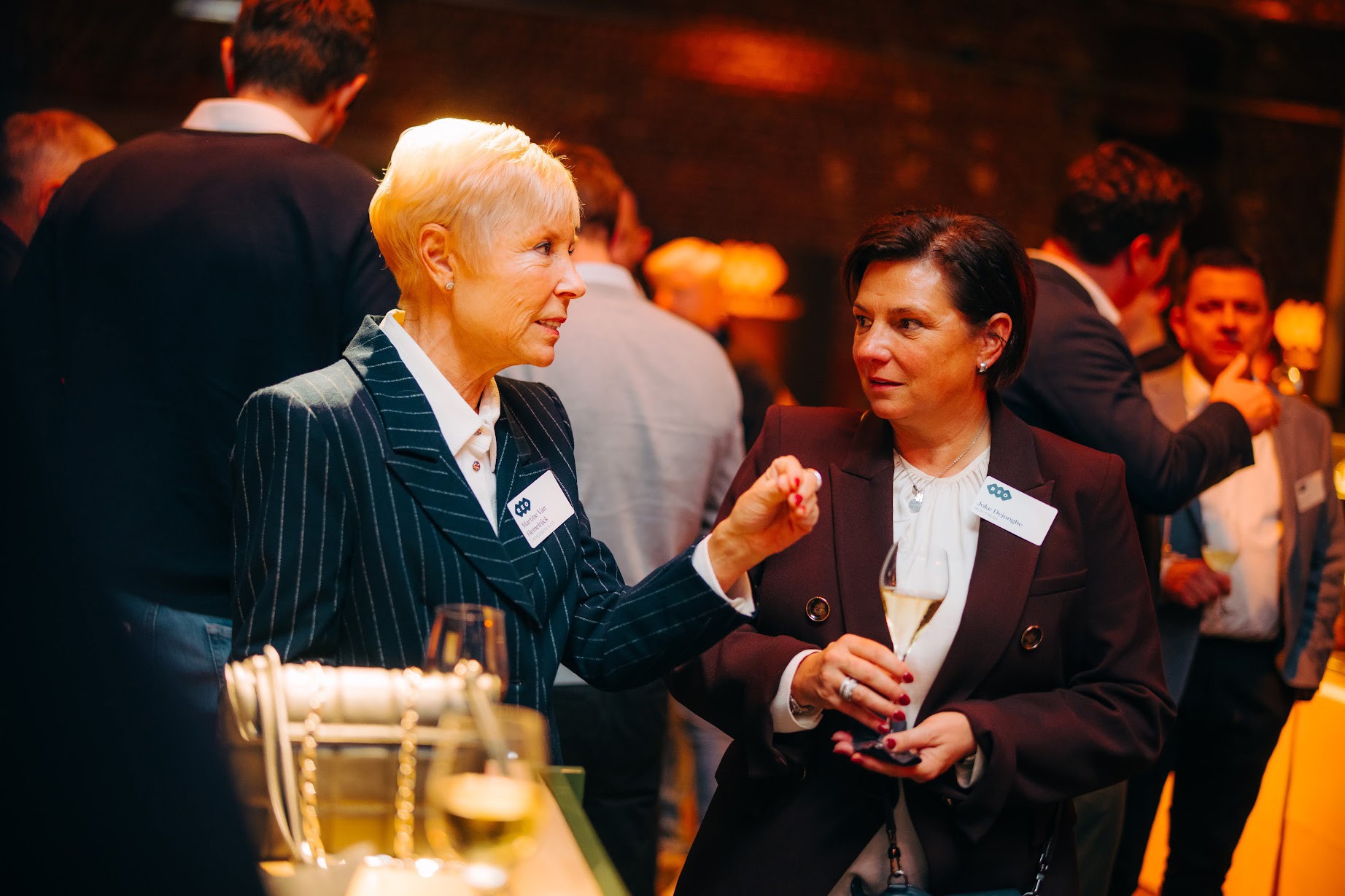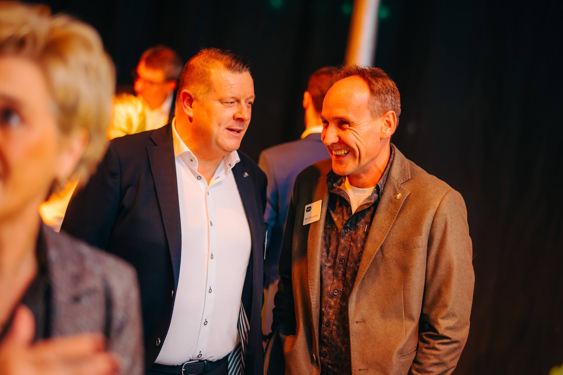 Gezelligheid in de zaal met onder meer Johan Chretien (Rejo Fresh), Liesbeth Claus en Caroline Baeten (Claus - Baeten) en Guy De Meyer (Demargro)