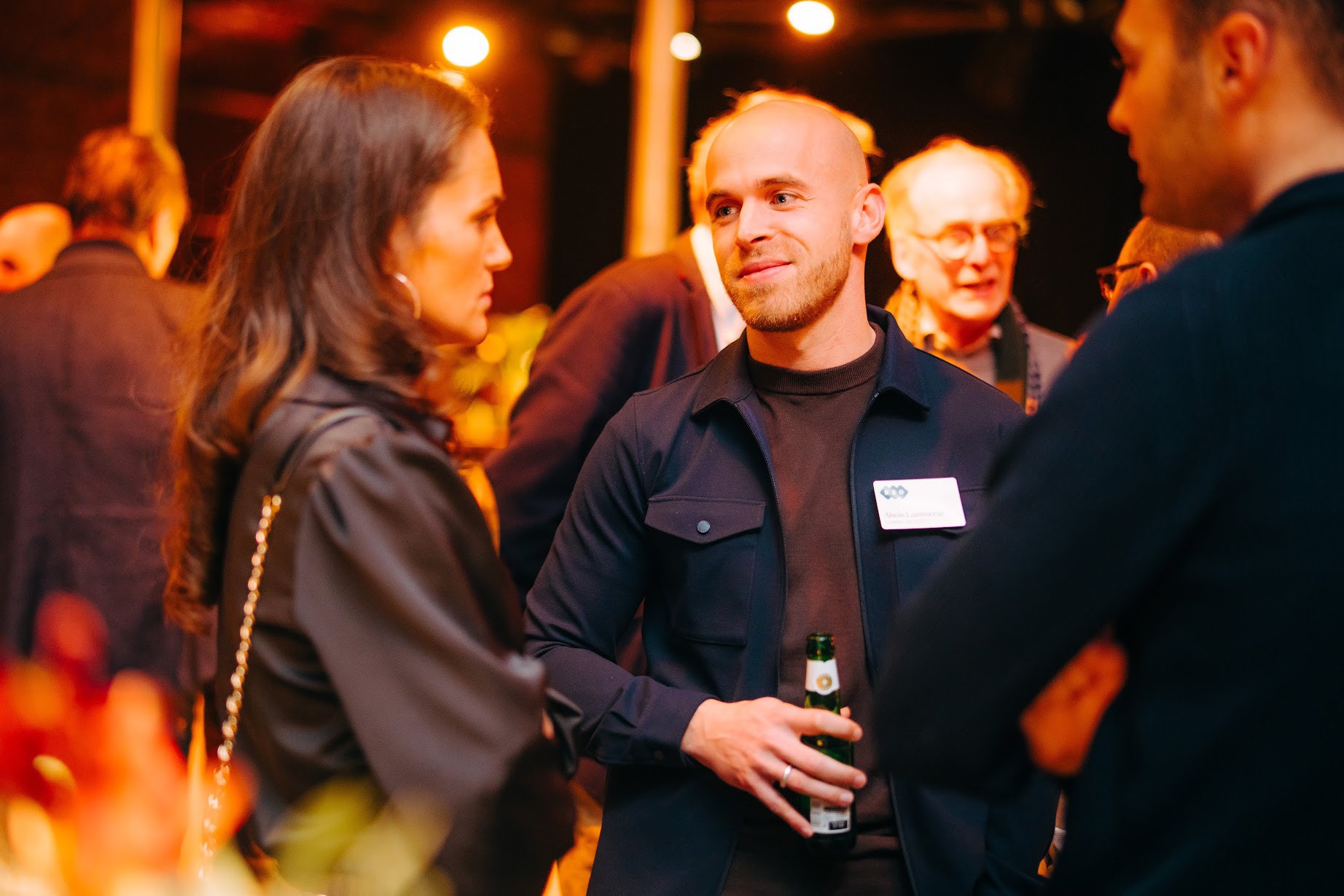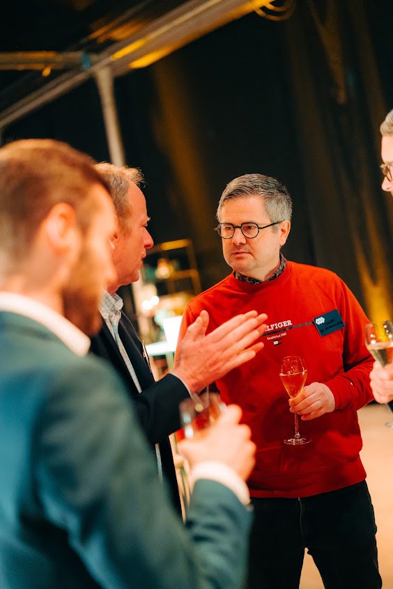 Liesbeth Claus (Claus - Baeten) in gesprek met onder meer rechts Johan Chrétien van Rejo Fresh