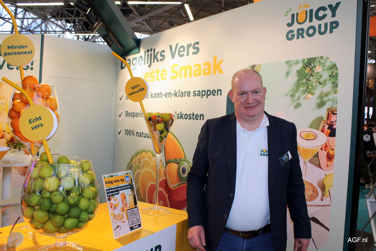 Harald ten Thij van The Juice Group. Sinds dit jaar de nieuwe 2-liter-fles van 100% r-pet.
