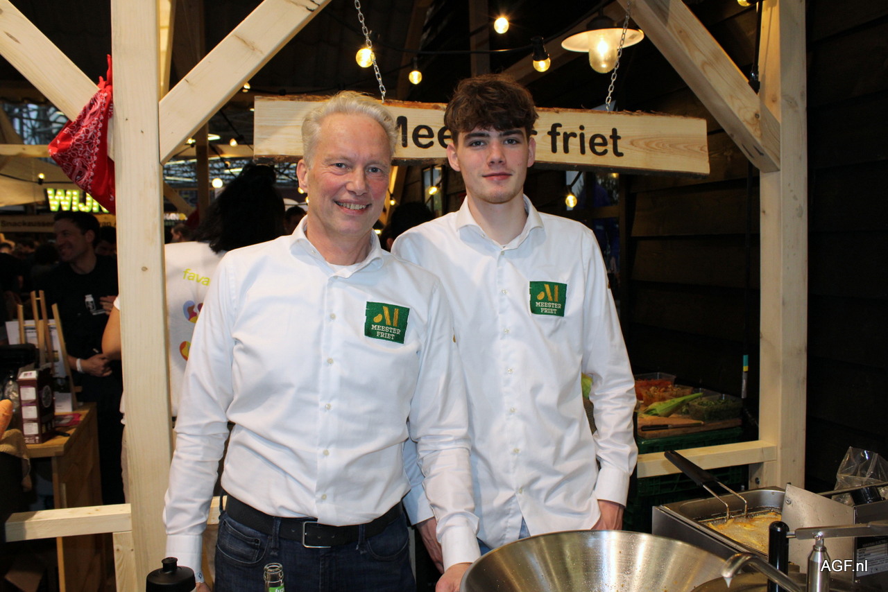 Maurice en Milo de Louw van Meesters Friet voor het eerst op de horecava op de stand van Bidfood.