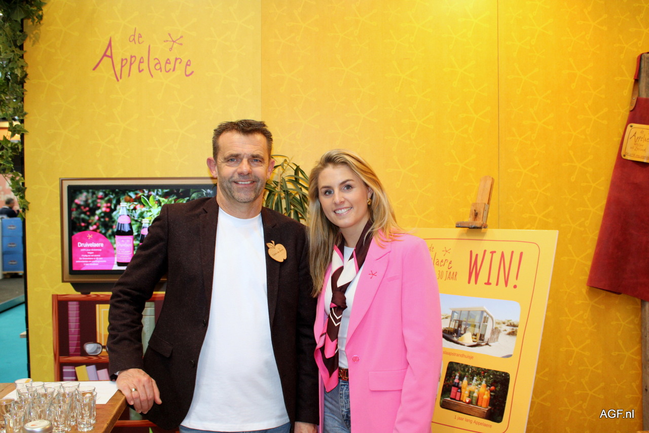 Carlo de Smit en Annemijn Boogaard van De Appelaere. De Appelaere zet zich in voor het Princess Maxima Center. Daarom een winactie op de beurs met verschillende prijzen.