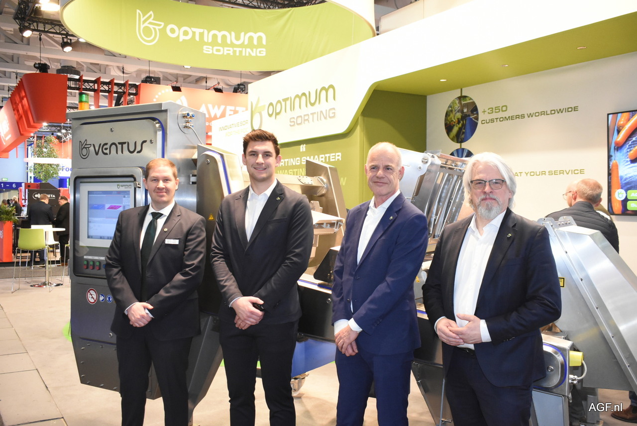 Erik de Wild, Jonathan Bervoets (Optimum Sorting), Alexander Thelen (Thelen Machines) en Wilfried Rombauts (Optimum Sorting). Wilfried heeft sinds kort het team van Optimum versterkt.