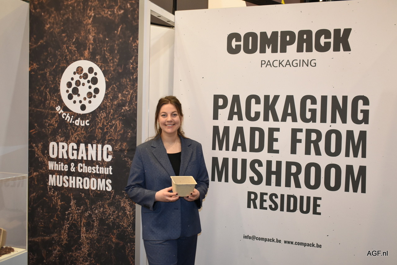 Nog een nieuwkomer op het VLAM-paviljoen, waar Compack zijn debuut maakte. Marie-Elise Cannie presenteerde namens het bedrijf de nieuwe duurzame verpakkingsoplossing.