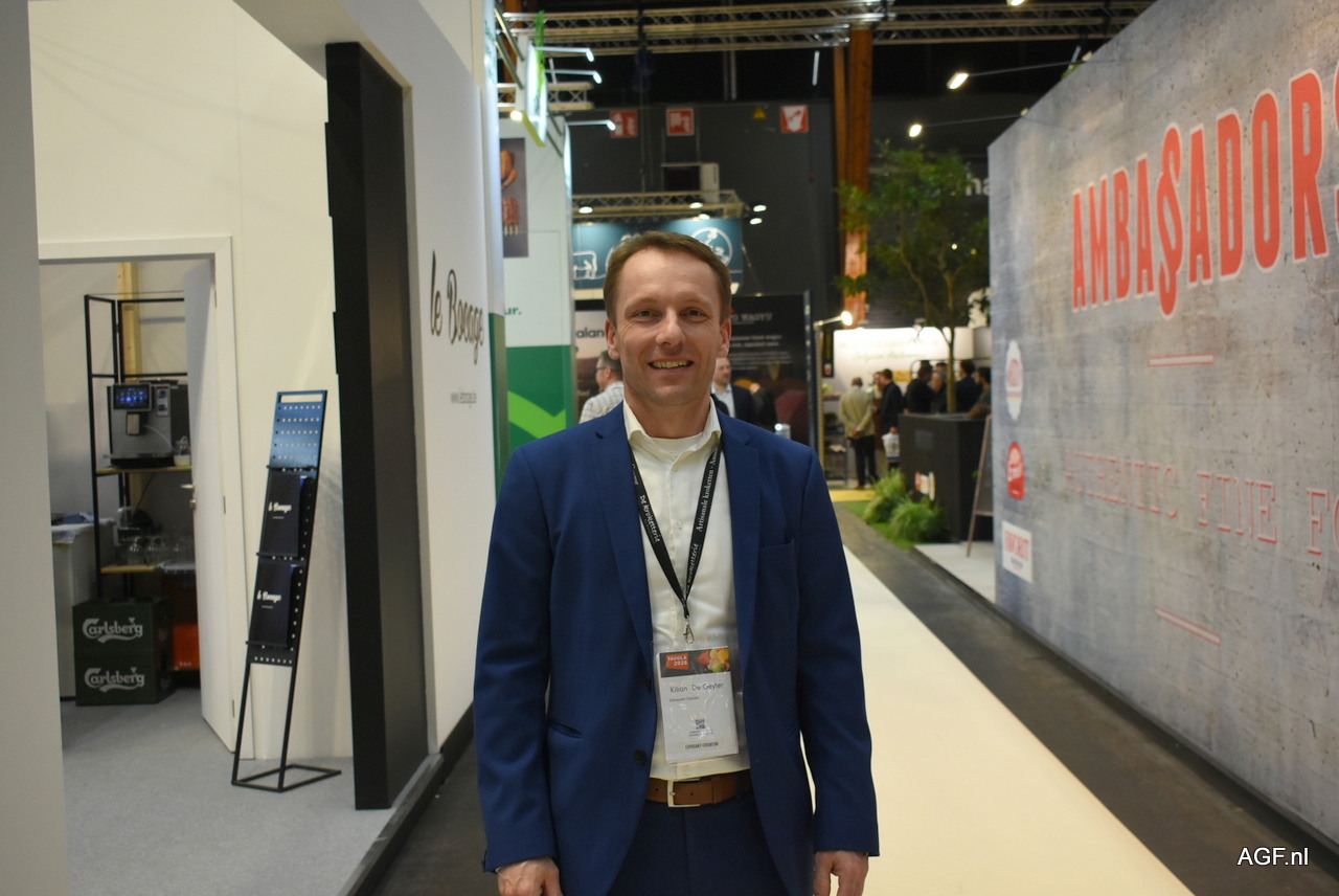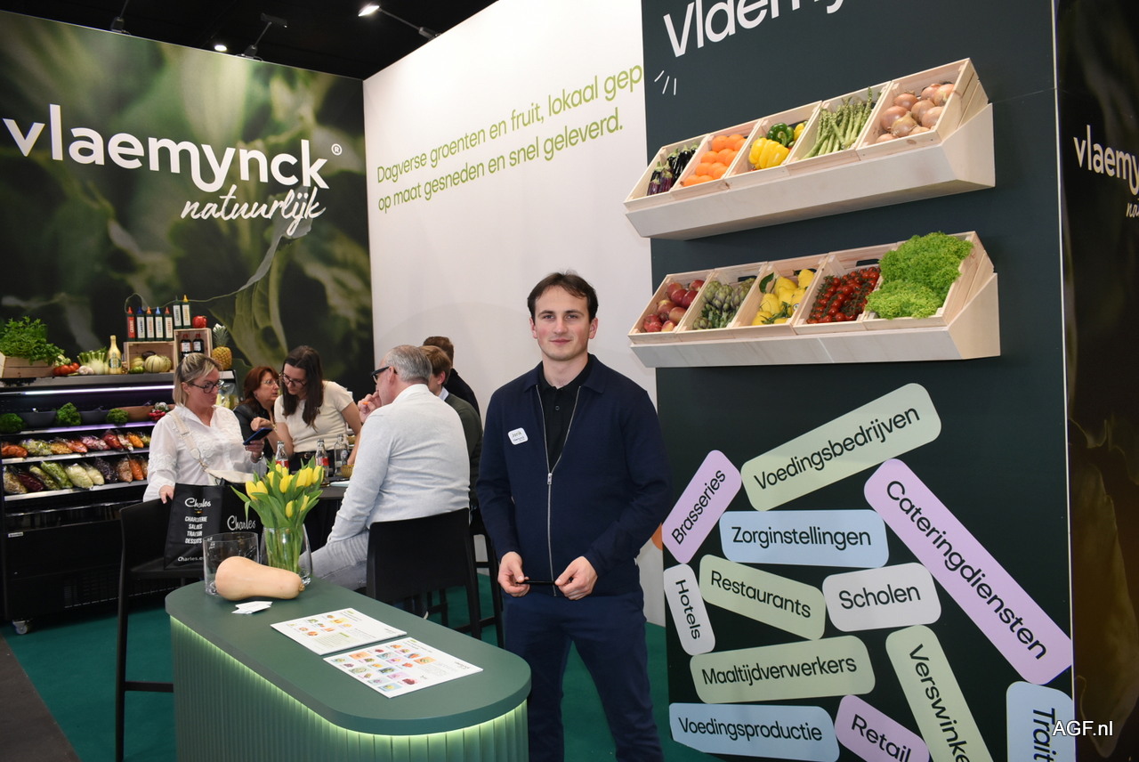 Jorik Beukeleirs bewaakt de stand van Vlaemynck Natuurlijk. De groothandel en snijderij levert aan horeca, zorg en voedingsbedrijven in West- en Oost-Vlaanderen.