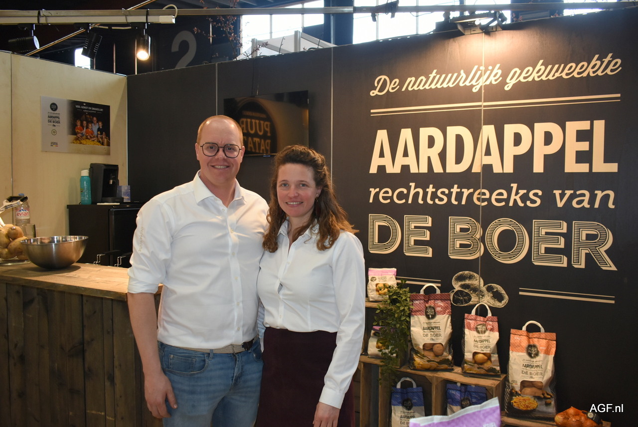 Mathias Van Hulle en Jasmien Ysebaert van Puur Patat. Zoals de tekst op de stand al doet vermoeden: gespecialiseerd in aardappelen verse friet, rechtstreeks van de boer.