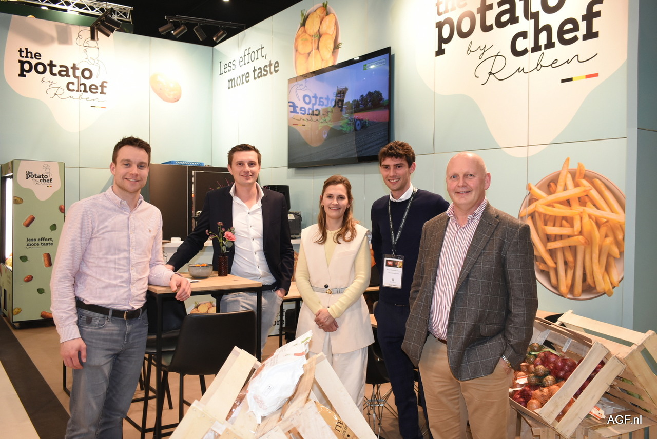 Een grote groep op de stand van De Aardappelhoeve deze editie van Tavola, waar ze, ondanks een uiterst uitdagende aardappelmarkt, toch traditiegetrouw hun merk The Potato Chef in de spotlight zet