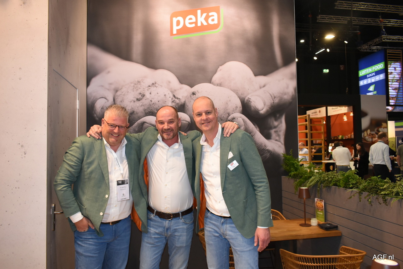 Tim Van Roy, Harm Zom en Paul de Wit van Peka Kroef, waar bezoekers op de stand weer verschillende live bereidingen van het assortiment kon proeven