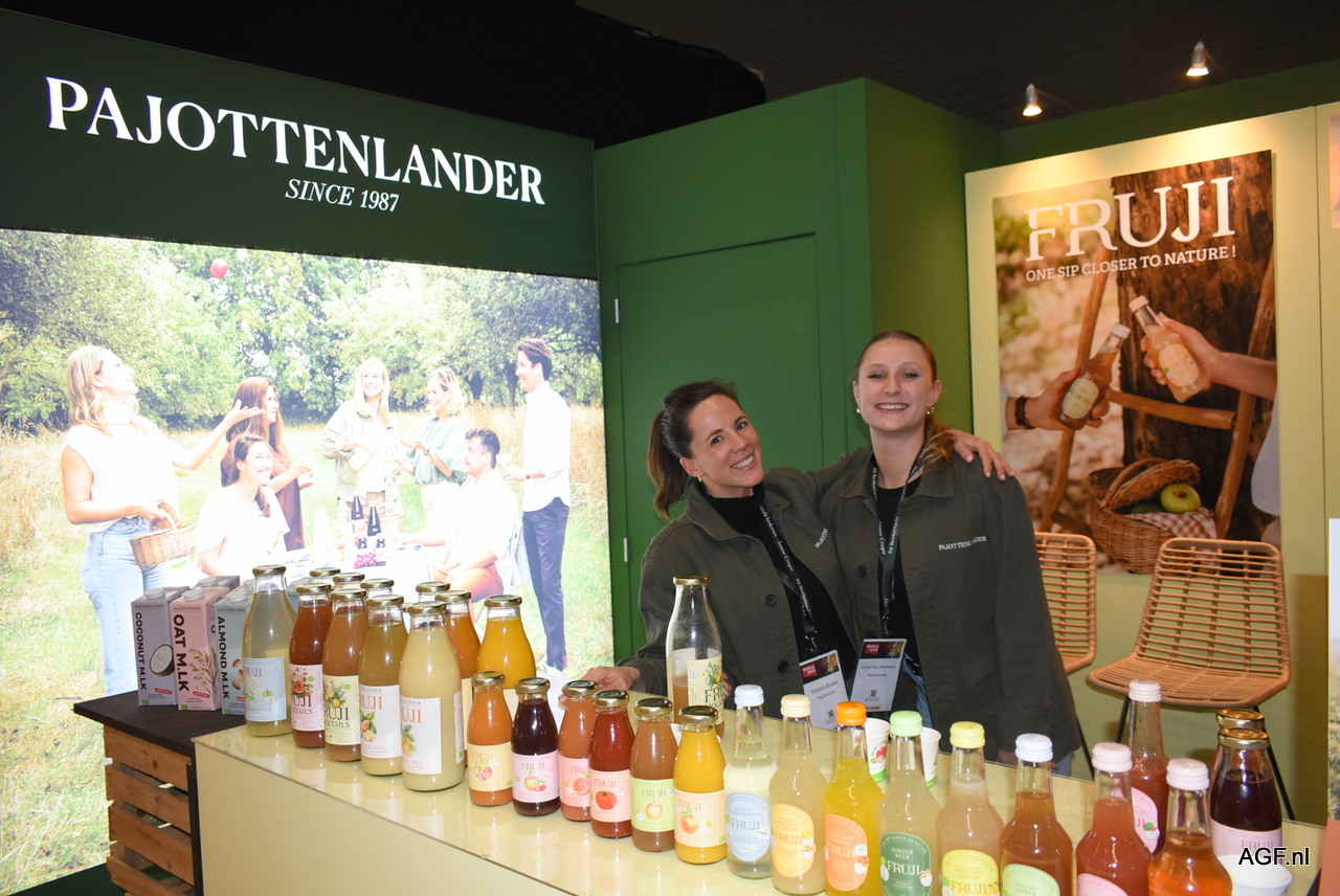 Yamina Bouten en Louise Van Utterbeeck van Pajottenlander. Het bedrijf levert volledig biologische fruitsappen, fris- en energiedranken