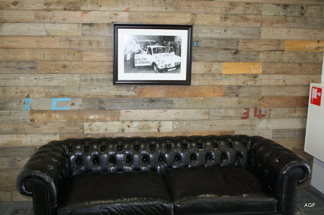 Fraaie bank bij de entree met een historische foto erboven van Martin Frankort en Theo Koning