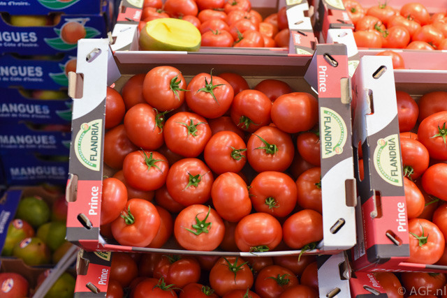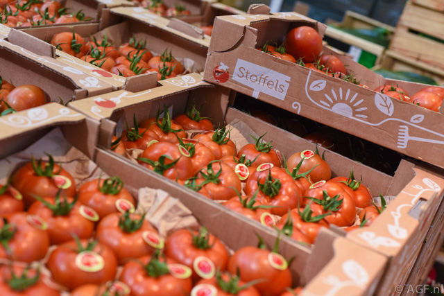 Ook de Belgische tomaten van Stoffels stonden netjes uitgestald
