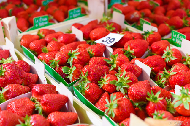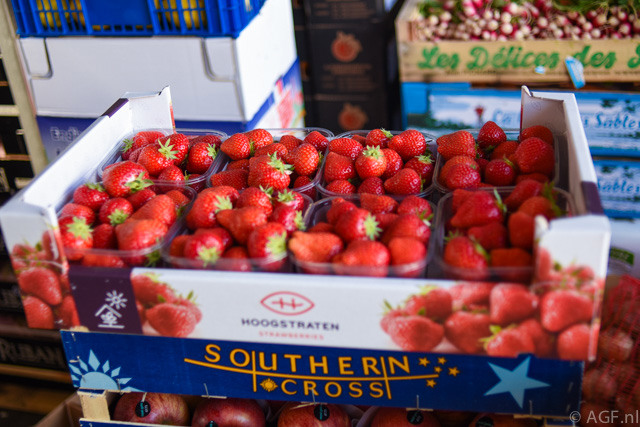 Veel aardbeien op de markt