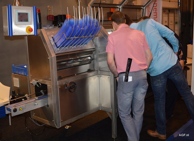Veel aandacht voor de dekselmachine van Venema Installations uit Eemshaven. Snelheden van 80 tot 100 eenheden zijn te halen met deze machine.