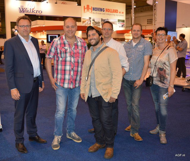 We kwamen Arie Verburg van FME tegen met John Verbruggen van Verbruggen paddenstoelen, met petje een Israëlische relatie, Corné Verboom van FME, Marco Wezenberg van Wezenberg Paddenstoelen en Wendy Verbruggen.