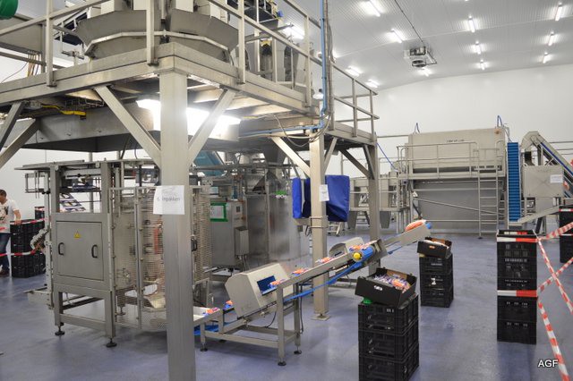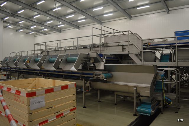 De Sormac wortelsorteer- en snijlijn. Heel de dag liepen bezoekers het nieuwe pand te bewonderen