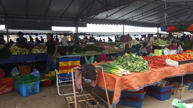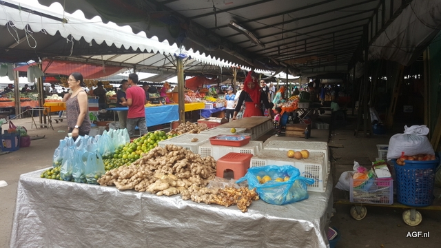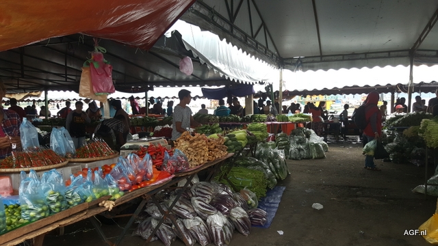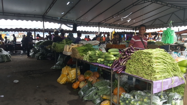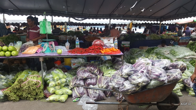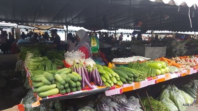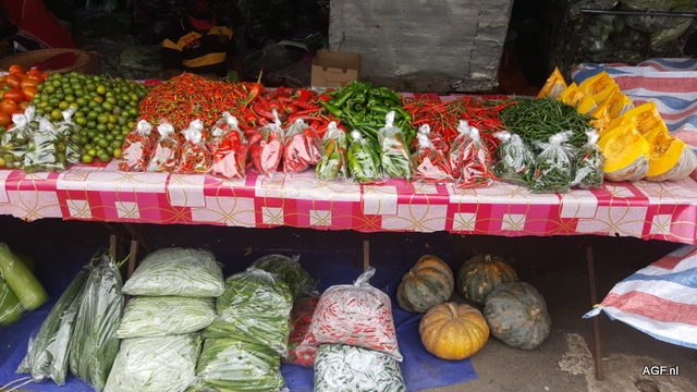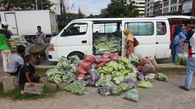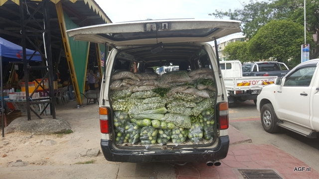 Er worden allerlei soorten groenten uit de auto geladen, die vervolgens netjes worden opgesteld voor de bus en daar worden verkocht.