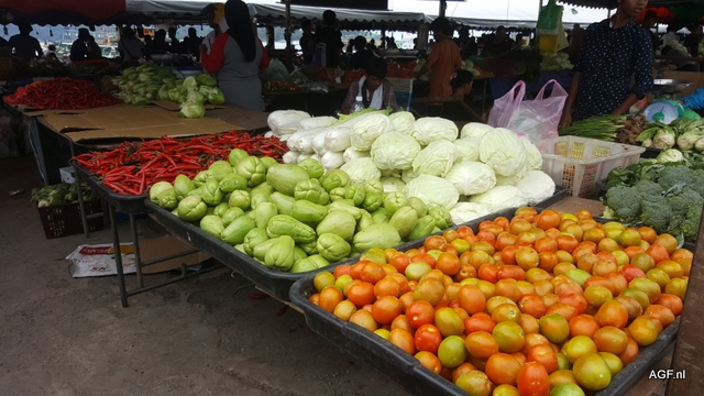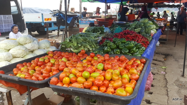 Maleisische tomaten met op de achtergrond paprika's en pepers