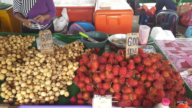 Verschillende Maleisische tropische vruchten voor lage prijzen