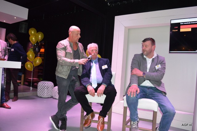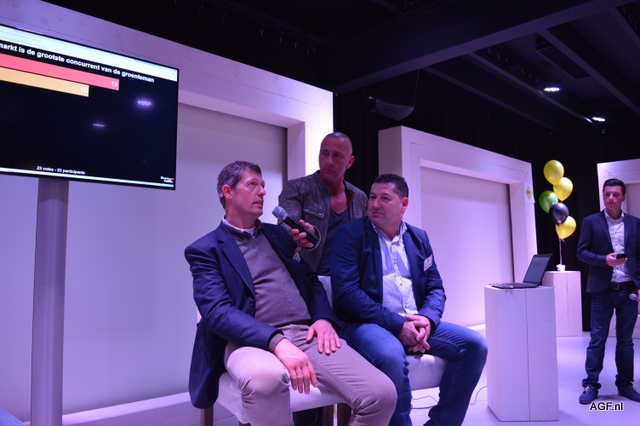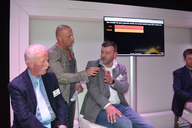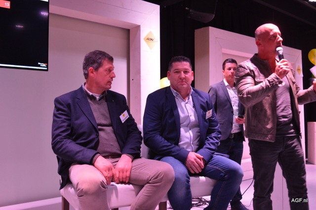 Jeroen Smits (l) interviewt bestuursleden van ADN Dick Meulblok (m) en Marco Dijkema