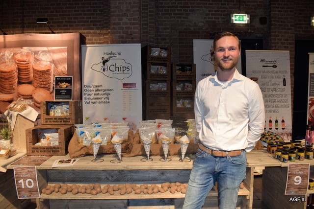 David de Gelder promoot de Hoeksche Chips die gebakken worden in de schuur van de teler.