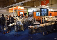 Zwager Techniek is leverancier van diverse verpakkingsmachines o.a. Flowpackers van Schib, Verticale vorm en sluitmachines van Prewa en Traysealmachines van Mondini. De Mondini Traysealer is voorzien van zero technology ook voor heat seal en MAP verpakken, waarmee er geen restfolie afval meer is en tot meer dan 30% folie kan worden bespaard. De Traysealer is modulair ontworpen, waardoor er meerdere type verpakkingen op eenzelfde machine mogelijk zijn. Links Nicole Jordens en Edgard Oude Veldhuys van Fresh & Pack Service BV, leverancier van folie en laminaten.