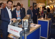 Bas Neggers en Frank Caris van Multipond bij de compact weger uit de J generatie. Deze weger heeft een hygiënisch design. Zo is de machine waterdicht, bestendig tegen reiniging met hogedruk, 'hufter' proof, aflopende vlakken zodat er geen reinigingsmiddel achter kan blijven. De machine voldoet aan alle Amerikaanse hygiëne eisen waar de lat erg hoog ligt hiervoor.