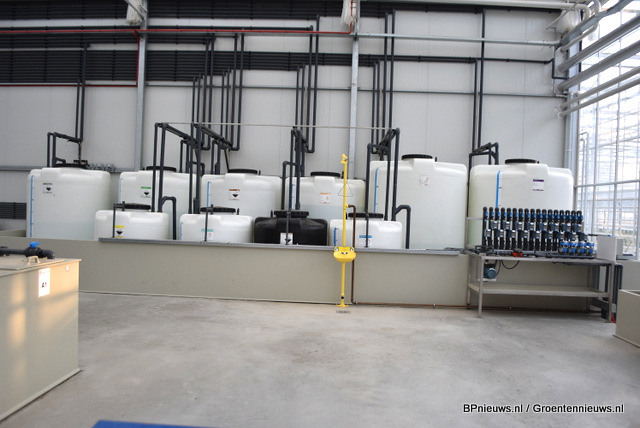 Op deze locatie alleen al ligt er 60 km waterleiding in de kas, om apart sturen mogelijk te maken. Met zeven mengbakken en klepstand terugmelding kan er precies op maat gestuurd worden.