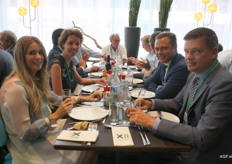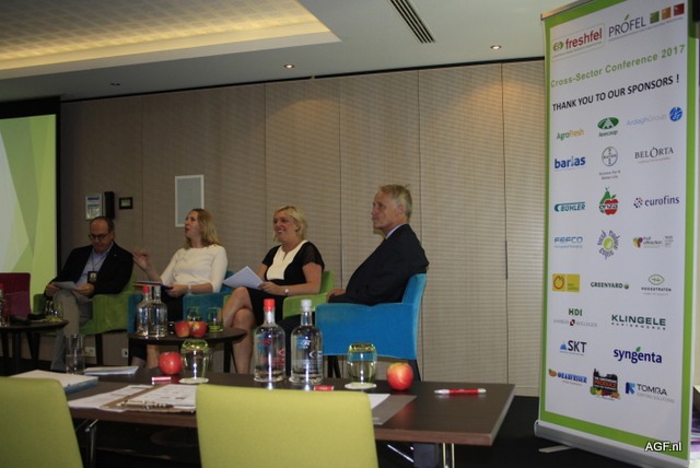 Met de klok mee. Linksvoor Veerle Van der Sypt (Fresh Trade Belgium), André Weichert (Fyffes), Zofija Cironkiene (Lithuanian Vegetable Producers Association) en david Patte (SNIFL-SC).